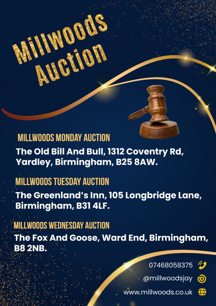 Millwoods Monday Auction – The Old Bill And Bull, 1312 Coventry Road Yardley Birmingham B25 8AW.