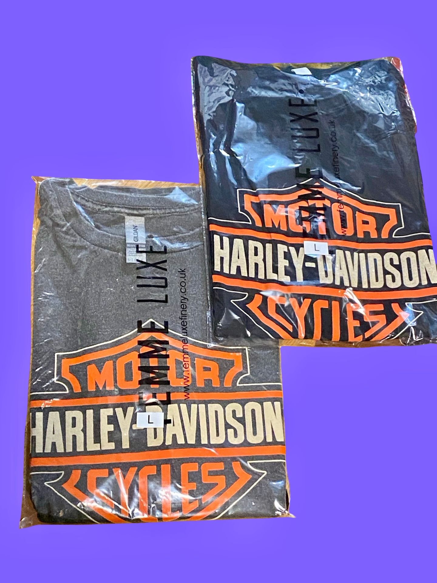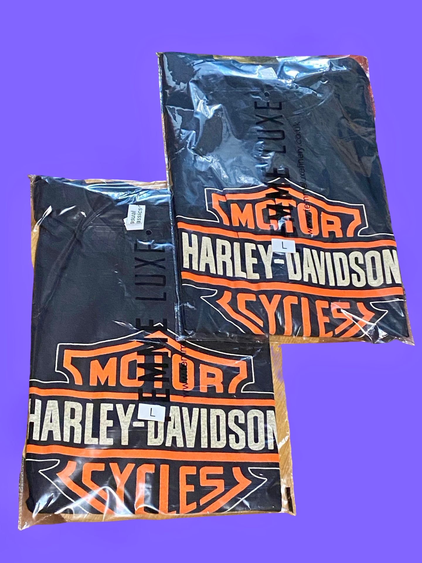 A joblot of T-shirts with the legendary Harley Davidson logo/design. In all sizes.